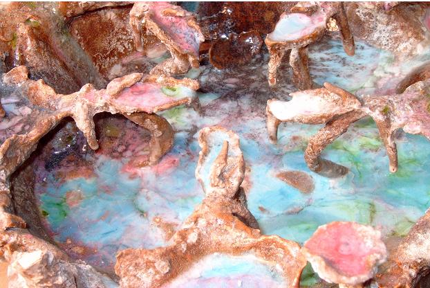 Her current studies replicate planetary formations, echoing the birth of planets and the life inside them. Much like scientific models of undiscovered planets and life forms, her works explore a range of geochemical possbilities beyond the planet Earth.